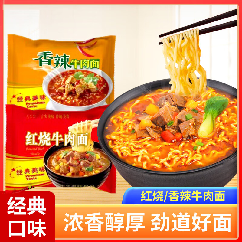 红烧牛肉面方便速食香辣牛肉面整箱批发宵夜干吃面浓香筋道汤面 香辣牛肉面【约70g*5袋】