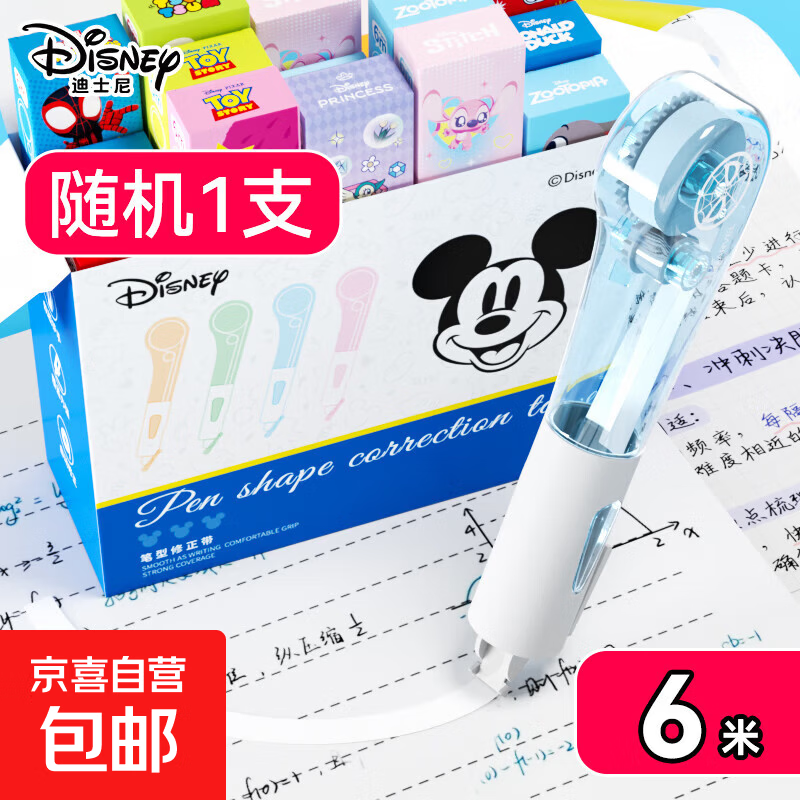 修正带学生用涂改带改正带高颜值无痕去字大容量静音顺滑休正带改字改错消字神器文具 迪士尼(Disney)笔型修正带1支装 随机卡通