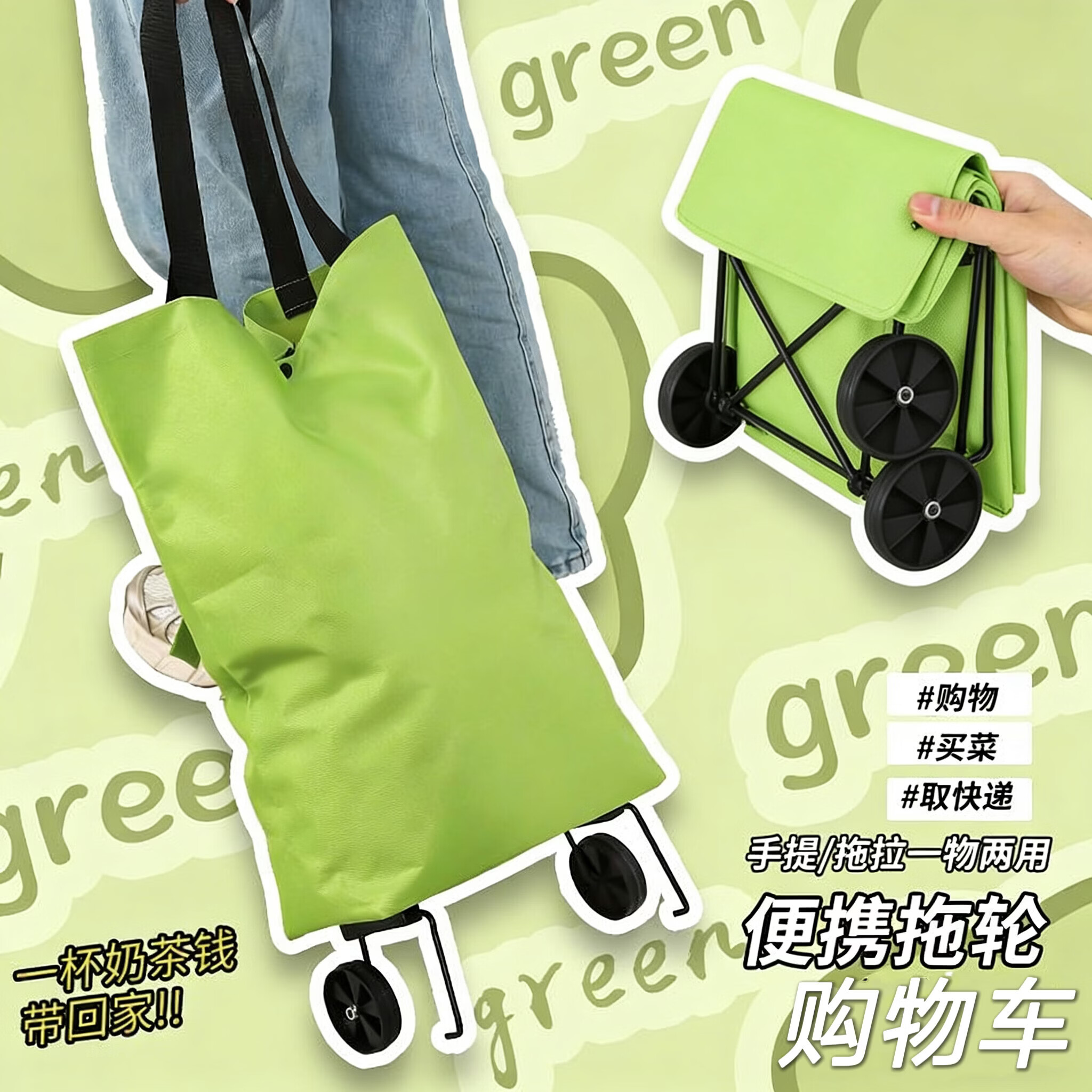 美术户外写生车单肩包手拉车可折叠小推车购物袋带轮子拉链女手提袋子便携大容量买菜车牛津布 三种背法【颜色随机*1】