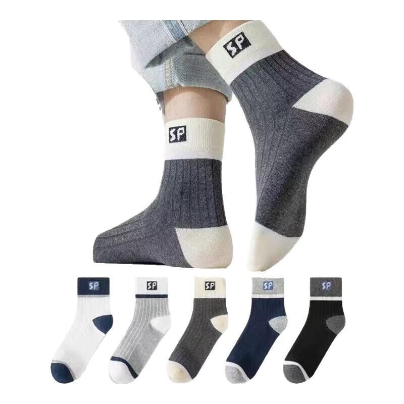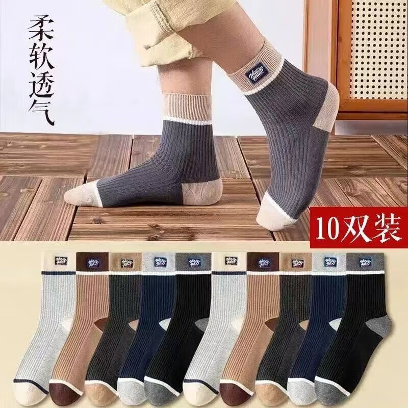 袜子男士中筒袜透气时尚吸汗长筒袜运动袜夏季薄款纯色男袜 中帮时尚男袜(直播专享2双装) 均码