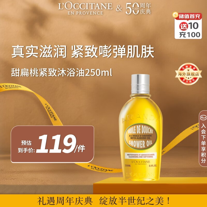 欧舒丹甜扁桃沐浴油250ml紧致保湿养肤级清洁不紧绷法国进口男女士礼物