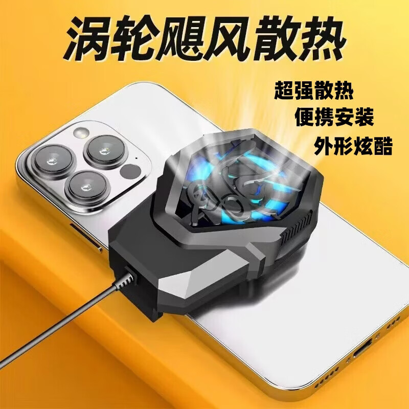 手机散热器S72大风扇降温神器支架背夹环保壳护眼蓝光低价款涡轮 吃鸡直播电竞适用于苹果小米华为 s72散热器+1对手指套