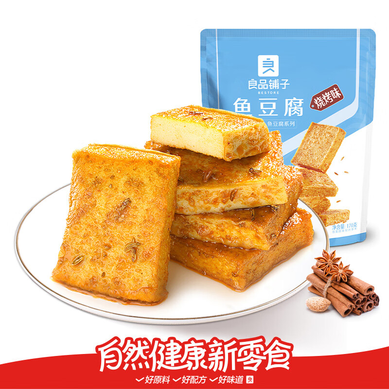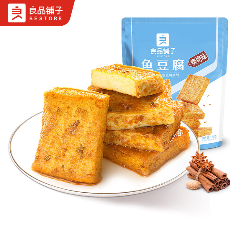 良品铺子烧烤味鱼豆腐零食小吃豆腐干豆干豆腐皮 辣条袋装休闲零食90g