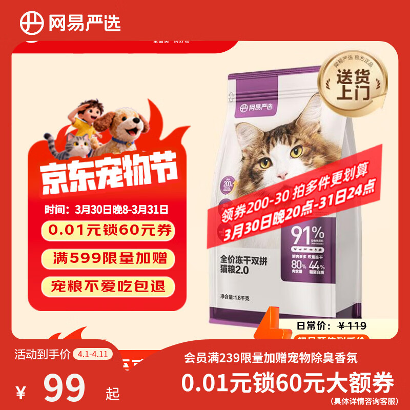 网易严选全价冻干双拼猫粮 主粮成幼猫无谷高鲜肉好适口 美毛护胃1.8kg