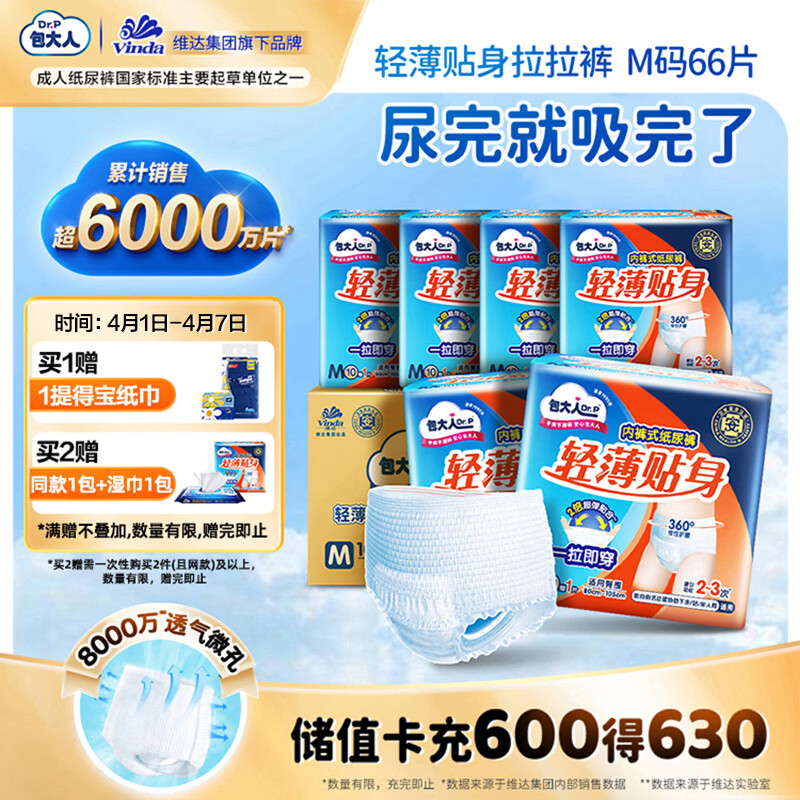 包大人(Dr.P)轻薄成人拉拉裤M66片(腰围:50-120cm)老年人产妇 内裤型纸尿裤