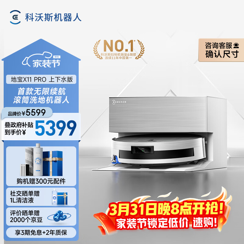 科沃斯扫地机器人X11 PRO扫拖洗烘一体自动清洗滚筒洗地机白银全自动上下水超薄款