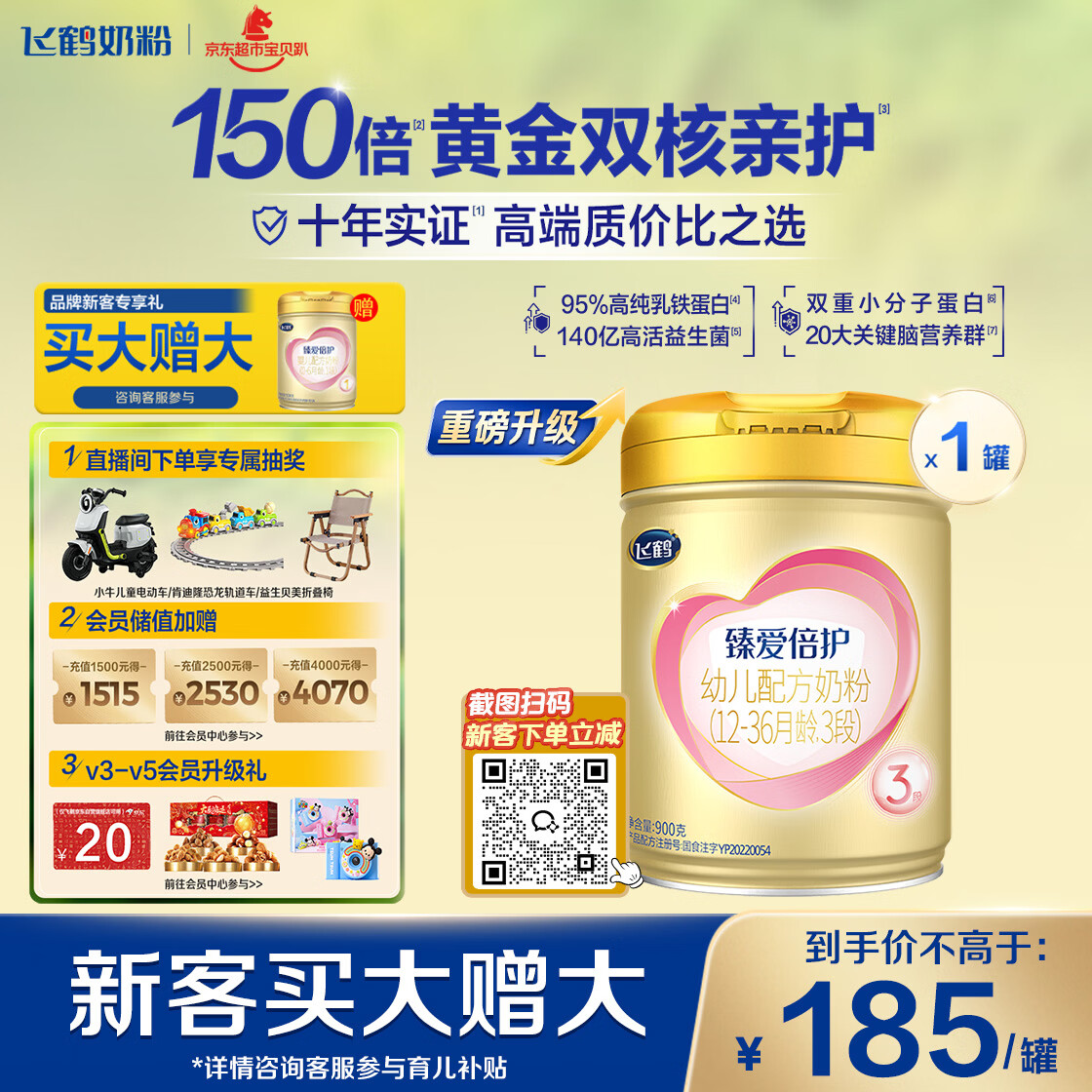 飞鹤臻爱倍护超级飞帆 婴幼儿配方奶粉3段(1-3岁)900克 乳铁蛋白dha