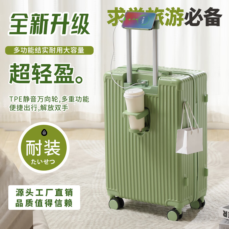 友胜保罗行李箱大容量拉杆箱超轻盈学生旅行箱男女密码箱皮箱多功能登机箱 牛油果绿 26英寸 【上学旅行长期出行】