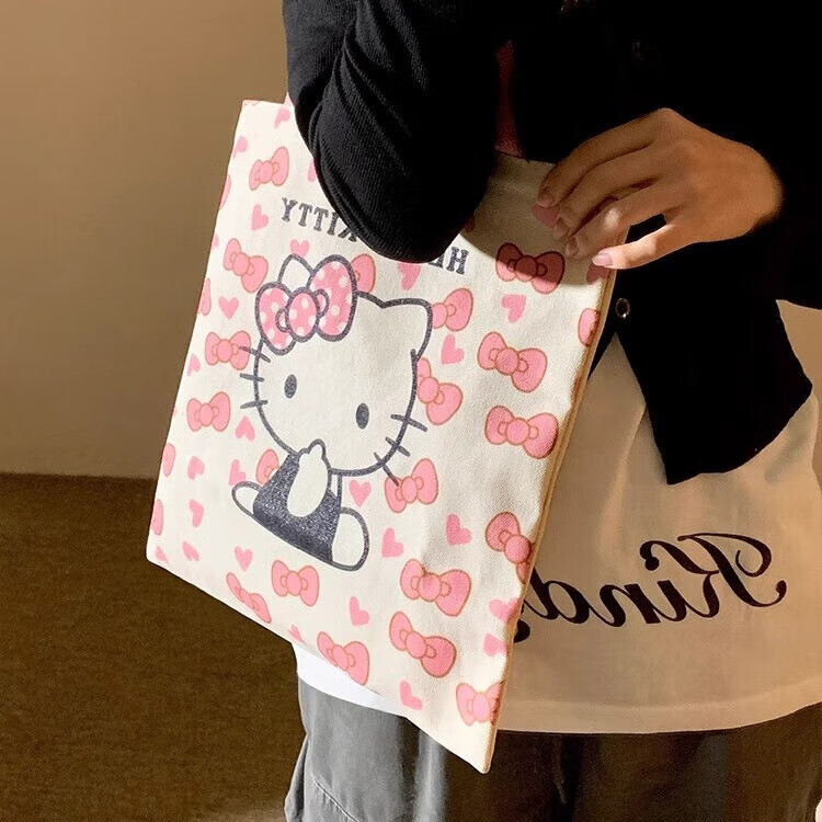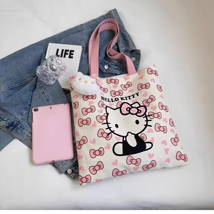 hellokitty卡通帆布包时尚包女手提袋可爱通勤百搭单肩上课大容量 粉色KT猫27*25cm 27.5*25cm