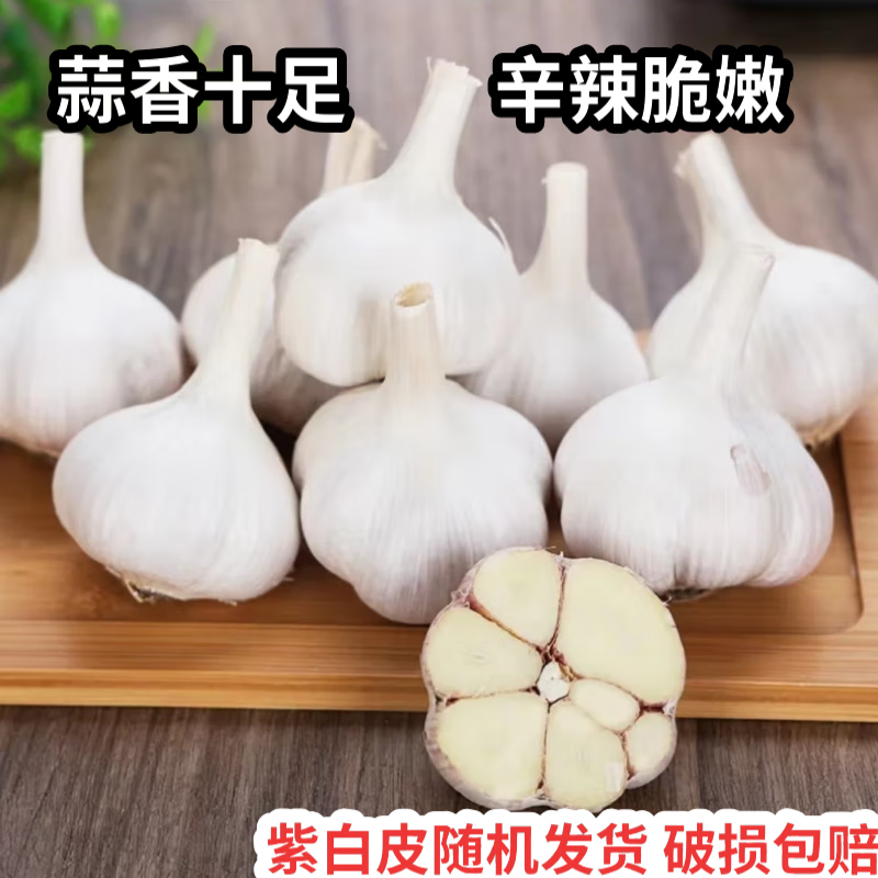 紫白皮蒜即食水果大蒜今年新鲜干蒜生鲜调料蒜瓣 3头大蒜0.22斤