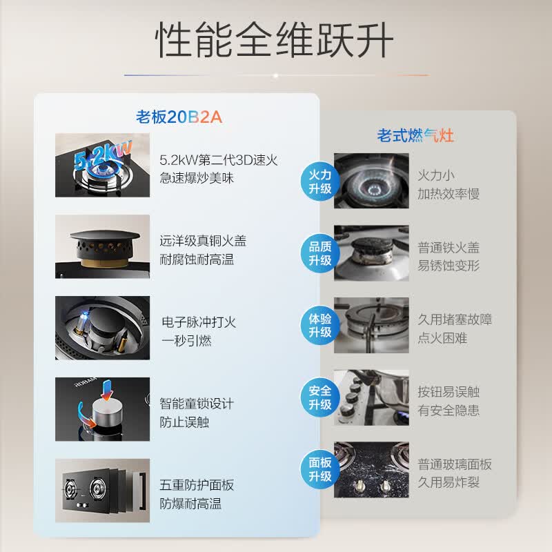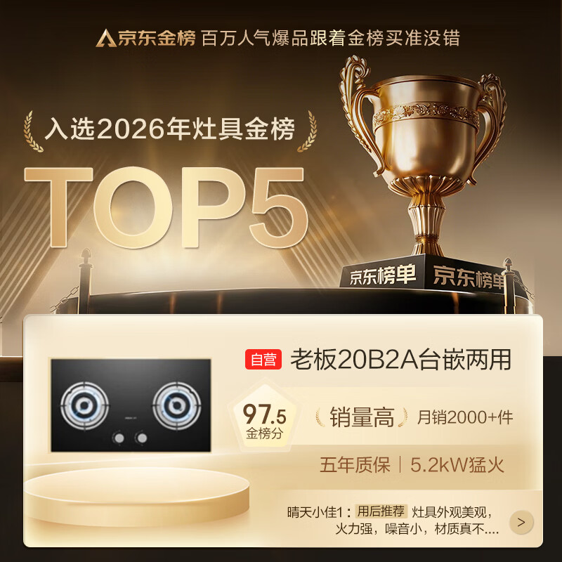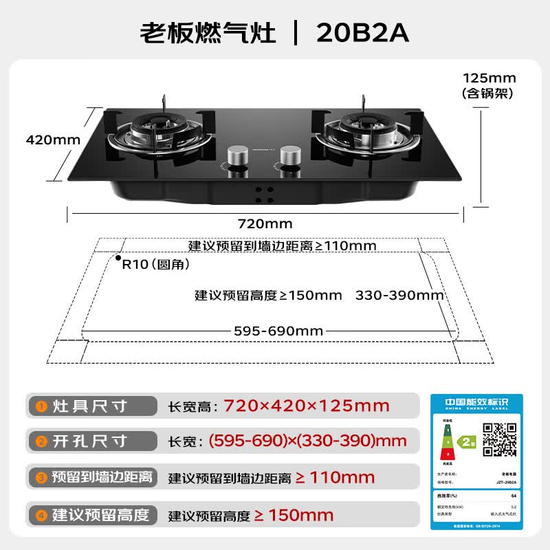老板(Robam)20B2A家用燃气灶天然气煤气灶双灶嵌入式5.2kW可调节换装不改孔灶具以旧换新政府补贴上门安装