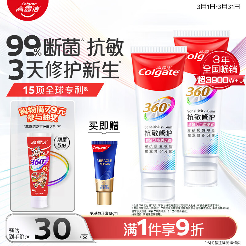 高露洁(Colgate)360°抗敏修护牙膏200g 抗敏感修复舒敏断菌护龈 含促生氟磷灰石
