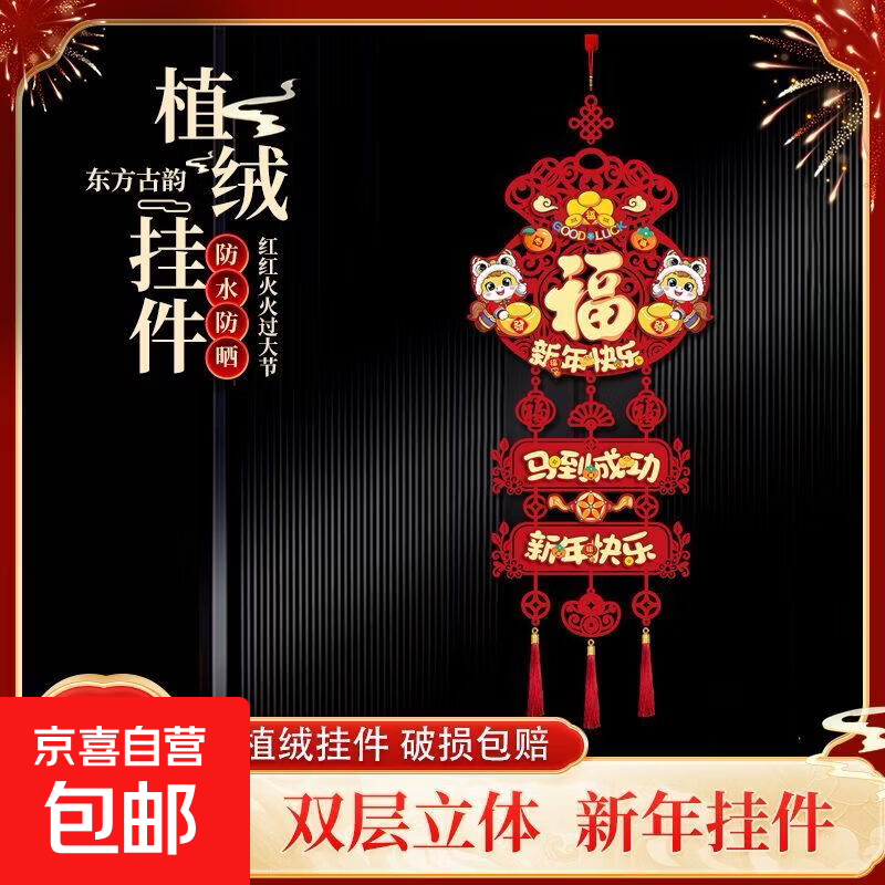2026马年春节立体植绒挂件福禄寿喜财字挂饰新年过年家用室内门挂 【二个装】马年三层挂件