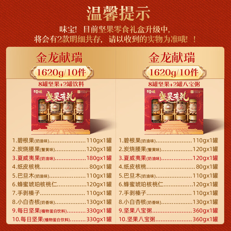 百草味坚果+零食礼盒1620g/10罐 罐装坚果干果零食礼包送礼