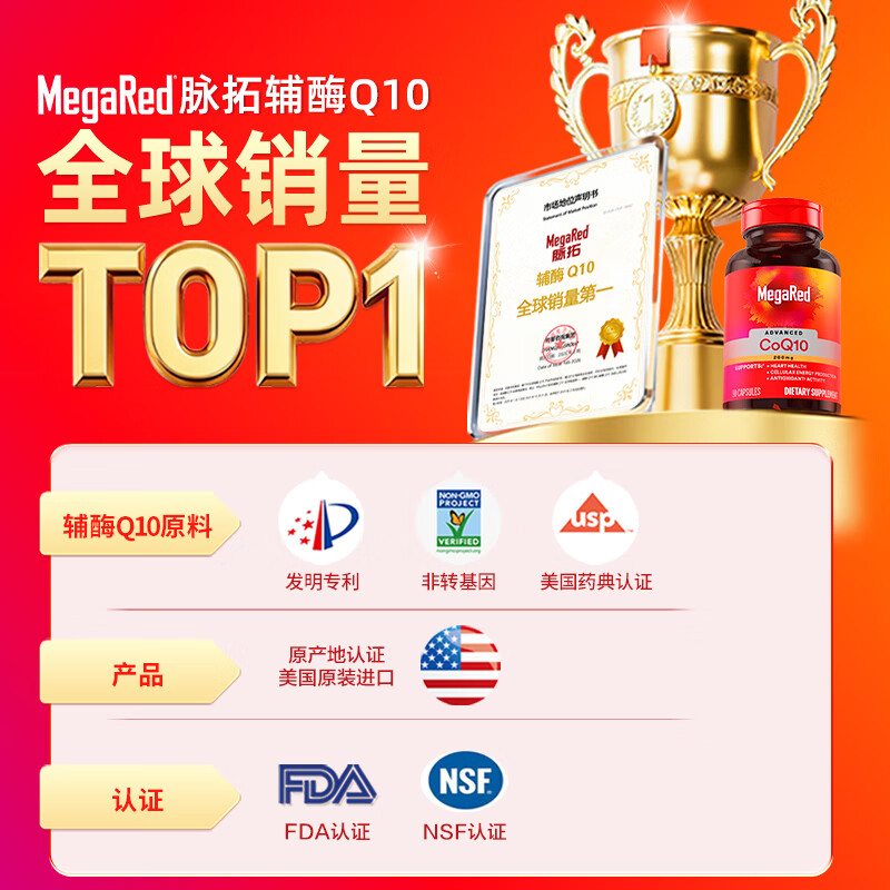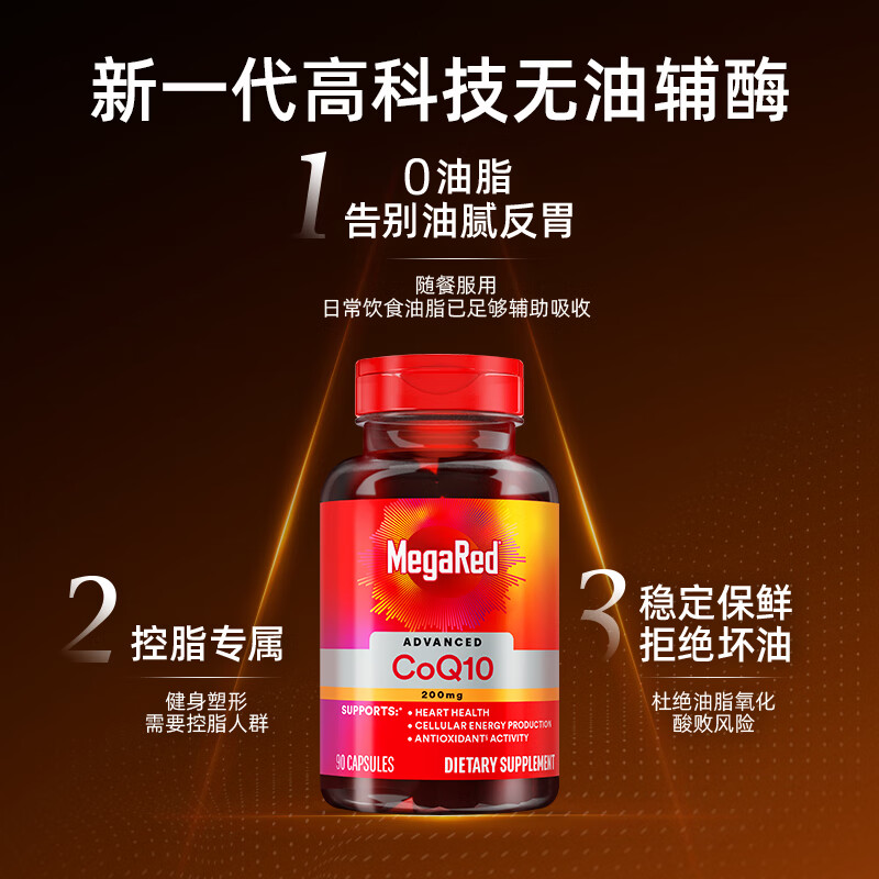 MegaRed脉拓辅酶q10胶囊高含量美国原装进口心脏养护coq10自营200mg90粒