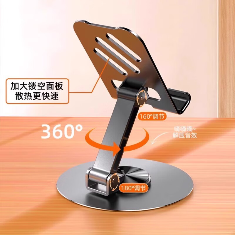 【全金属】360度旋转手机支架机械折叠桌面平板通用追剧懒人直播便携 特惠款-斜线镂空灰*2个【全金属】360°旋转折叠
