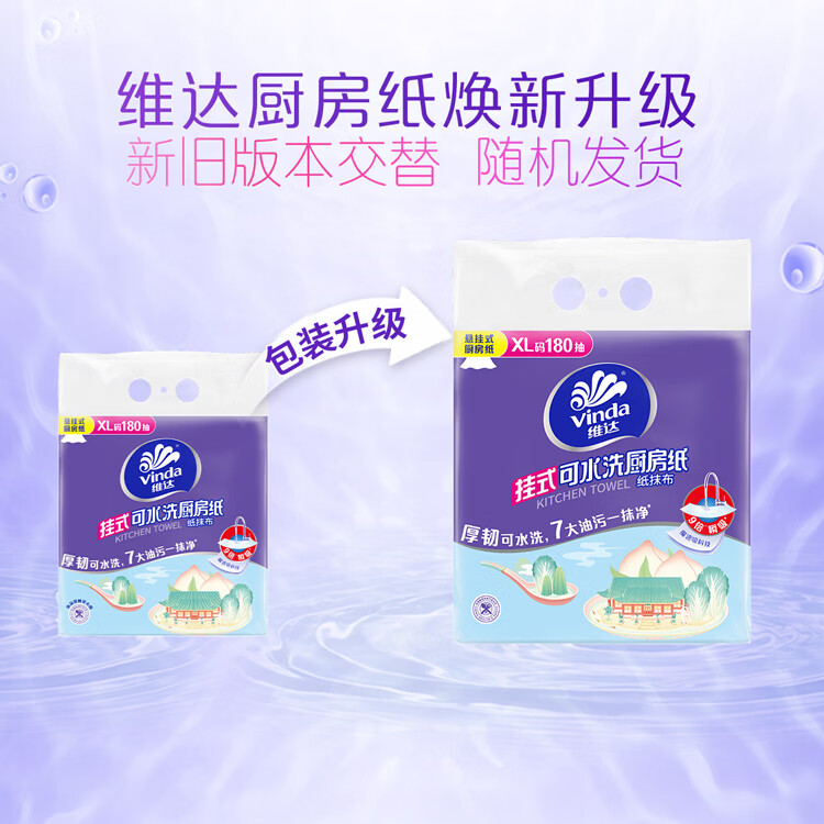 维达(Vinda)厨房用纸 悬挂式抽纸180抽*单提 厚韧吸油厨房纸 新旧随机