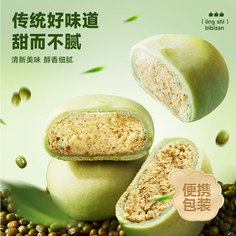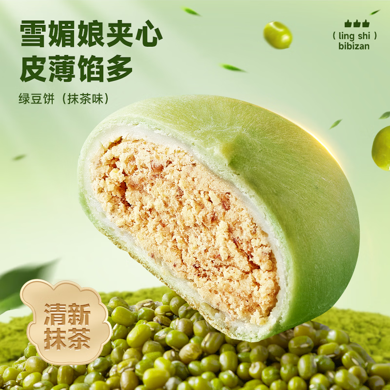 比比赞(BIBIZAN)抹茶雪媚娘绿豆饼1002g经典传统风味面包蛋糕点心饼干休闲零食品