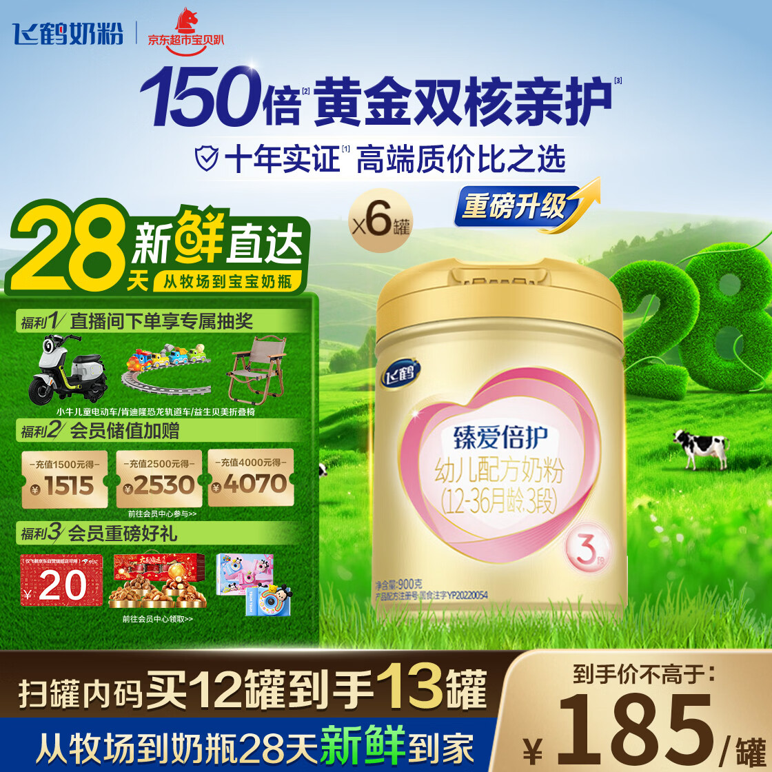 飞鹤臻爱倍护幼儿配方奶粉3段(1-3岁)900g*6罐 28天【预售】
