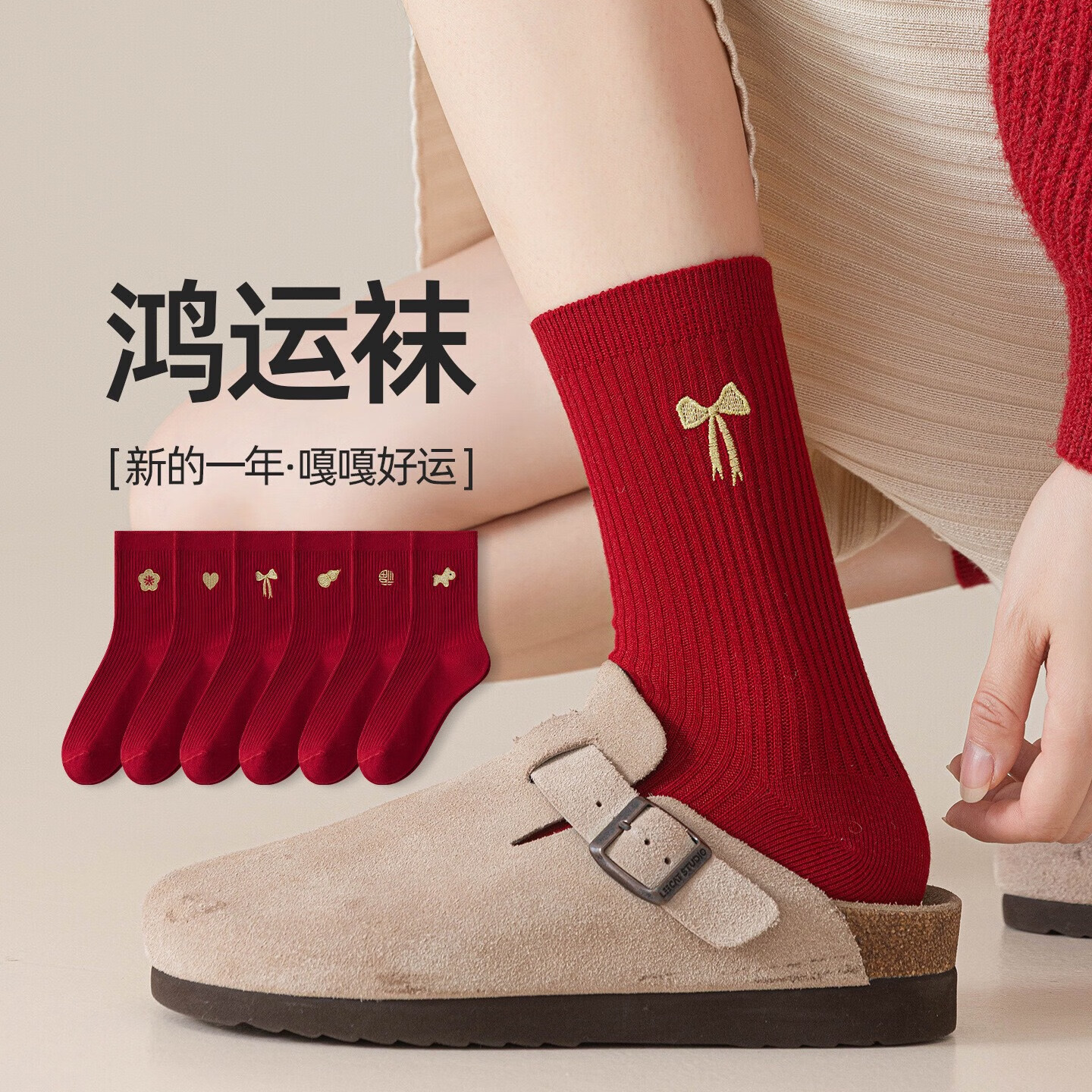 新年鸿运棉袜袜子女福禄中筒袜保暖红色本命年男女喜庆长袜 【随机款式】 涤纶印花版 2双