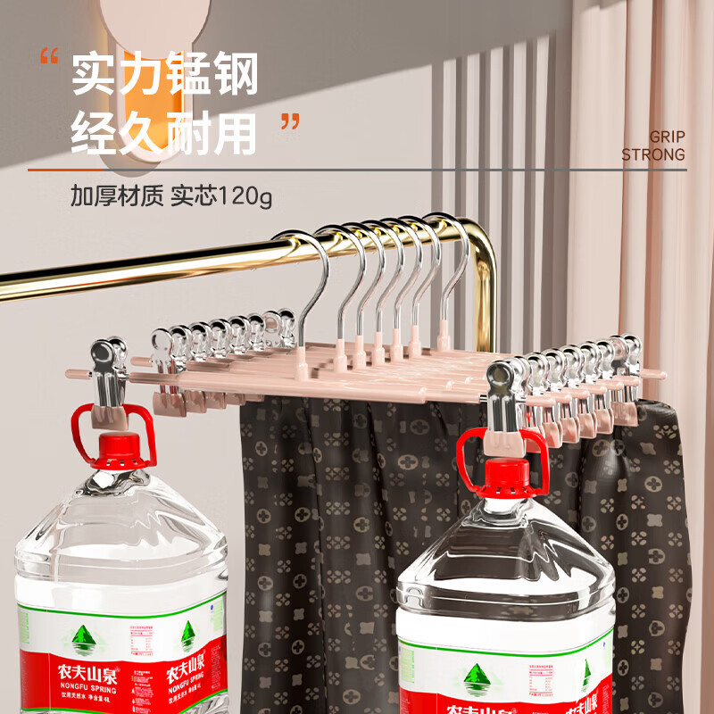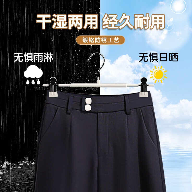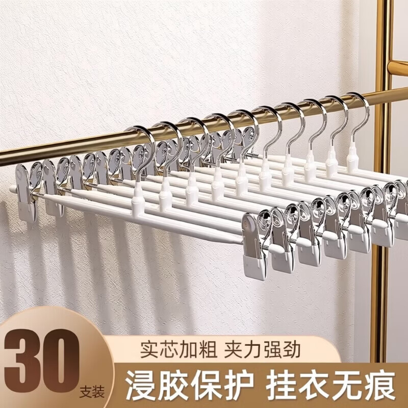 裤架家用无痕裤夹挂衣衣架裤子专用强力夹子防滑带裙子不锈钢晾晒 璀璨白【夹子可移动/无痕裤架】 3支装