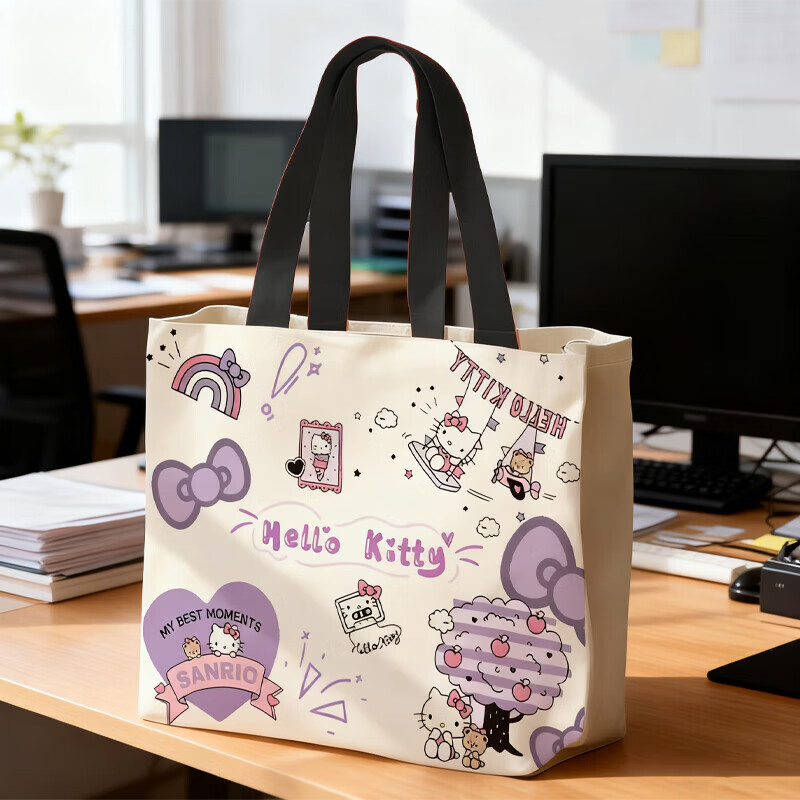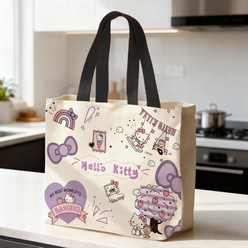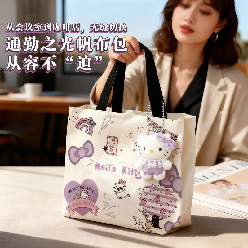 kitty帆布包大容量春夏新款卡通帆布包可爱通勤包小众百搭手提包 KT【紫色-无挂件】