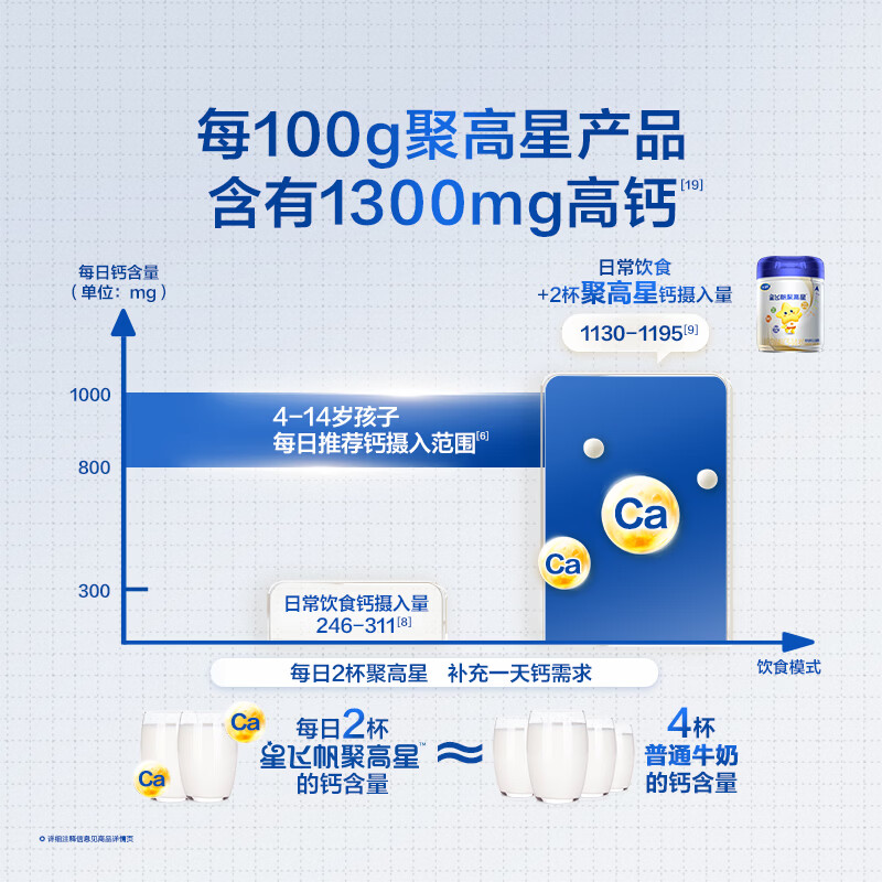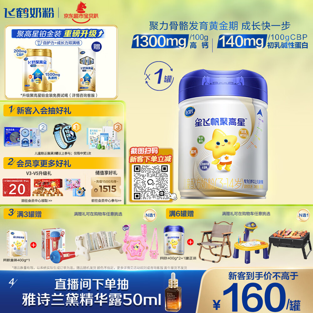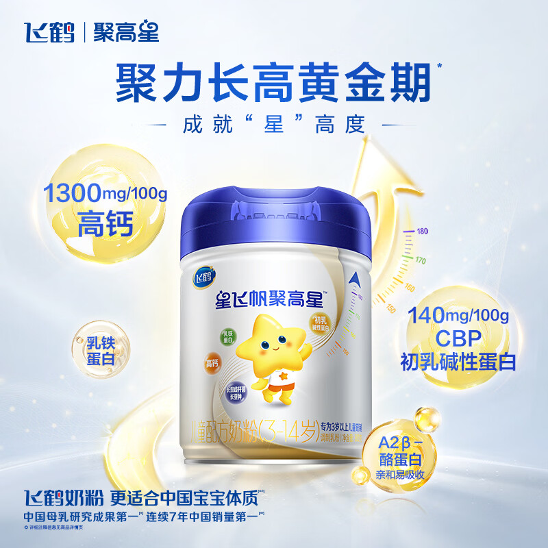 飞鹤星飞帆聚高星A2乳铁蛋白高钙CBP儿童成长奶粉4段(3-14岁)800g*1罐