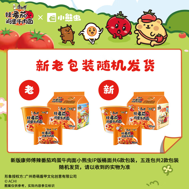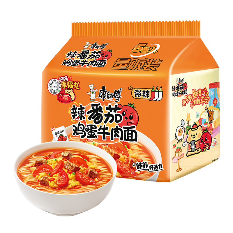 康师傅方便面 经典辣番茄鸡蛋牛肉面五连包110g*5 泡面袋装速食方便食品