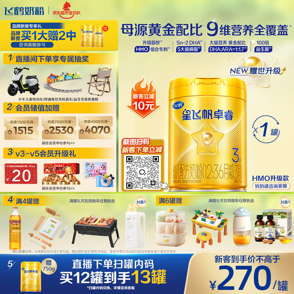 飞鹤星飞帆卓睿升级配方3段幼儿配方奶粉(1-3岁)750g 专利HMO乳铁蛋白