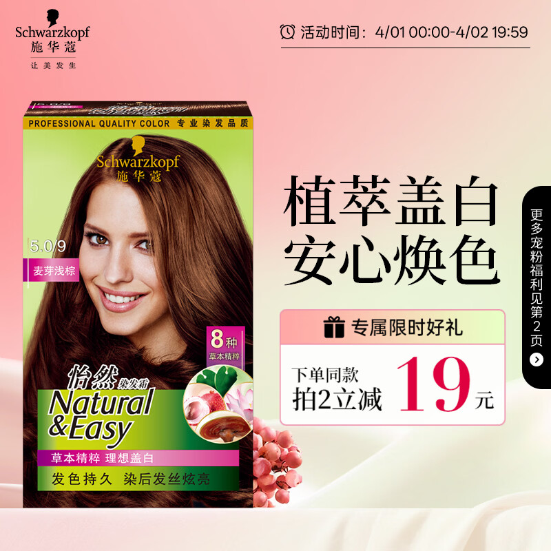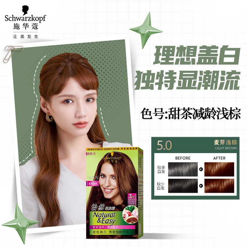 施华蔻(Schwarzkopf)怡然染发霜5.0/9麦芽浅棕 染发剂植物染发膏自己染男女盖白发
