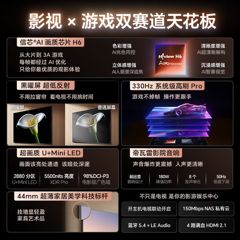 海信电视E8Q 75英寸 信芯H6 2880分区U+MiniLED 黑曜屏 330Hz 帝瓦雷音响 国家补贴世界杯电视75E8Q