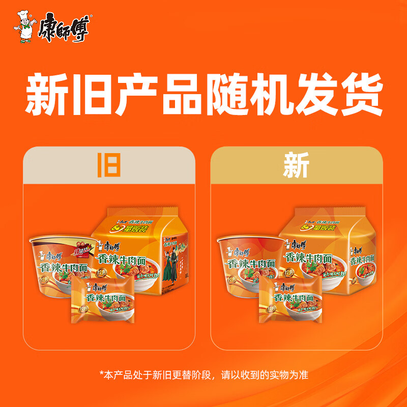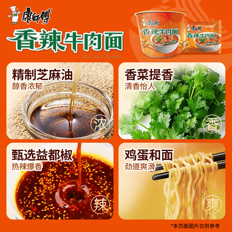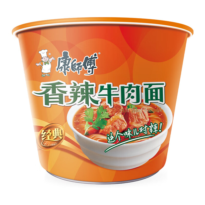 康师傅方便面 经典桶 香辣牛肉面111g*3桶 泡面桶装速食 方便食品