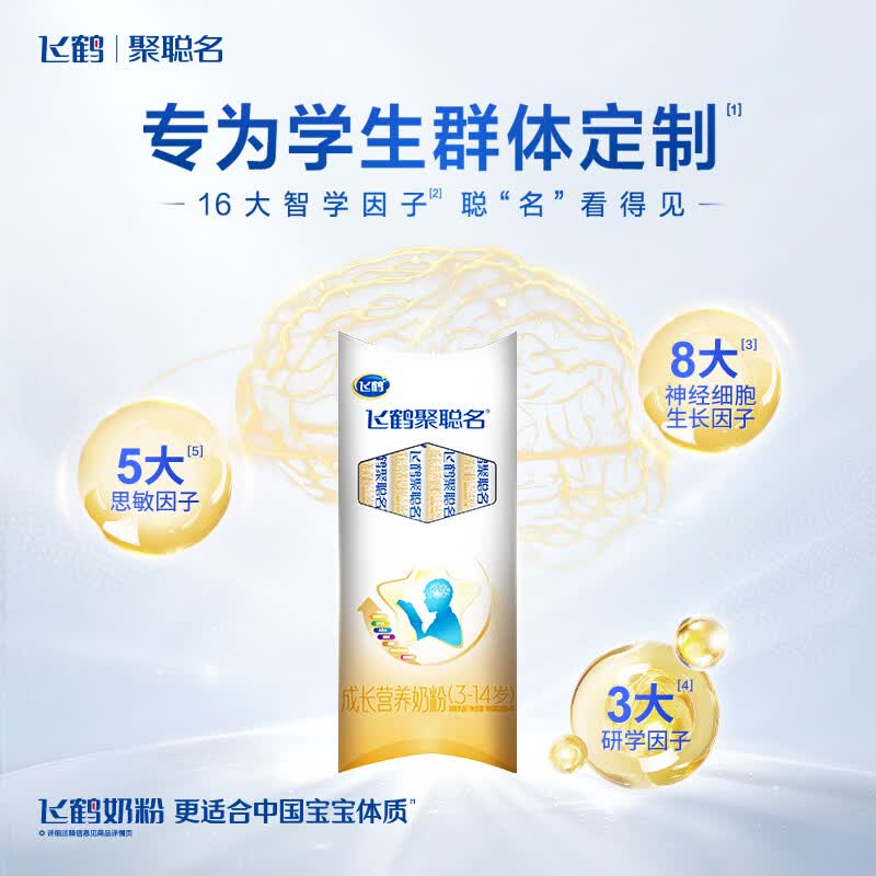 飞鹤聚聪名高钙DHA脑营养学生专研配方奶粉4段(3-14岁)25g*4条