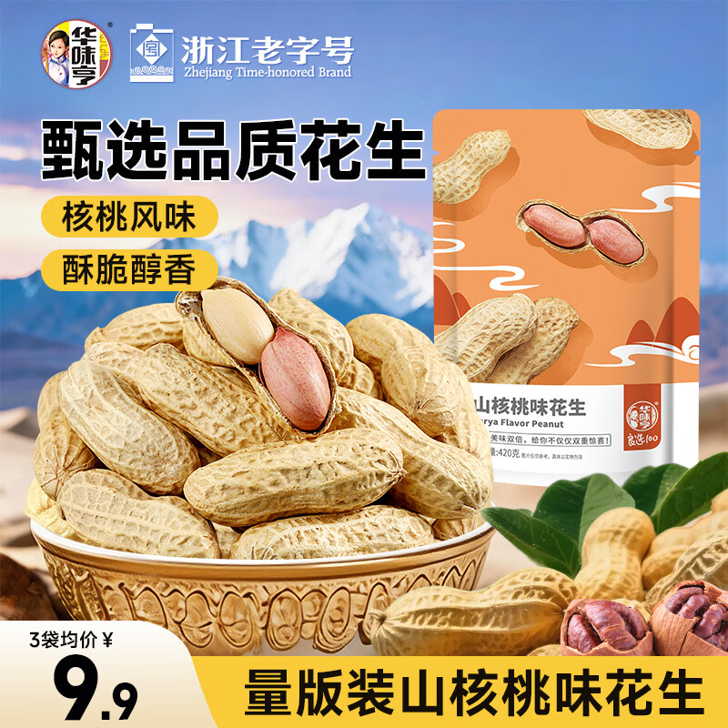 华味亨山核桃味花生420g/袋 休闲零食品坚果炒货带壳花生团购休闲零食