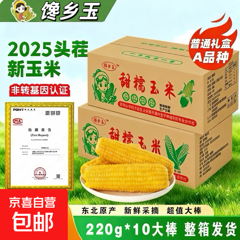 当季新货东北黄甜糯玉米棒10支真空包装低脂黄糯大棒甜东北黏苞米 头茬黄玉米4棒 200g起/棒