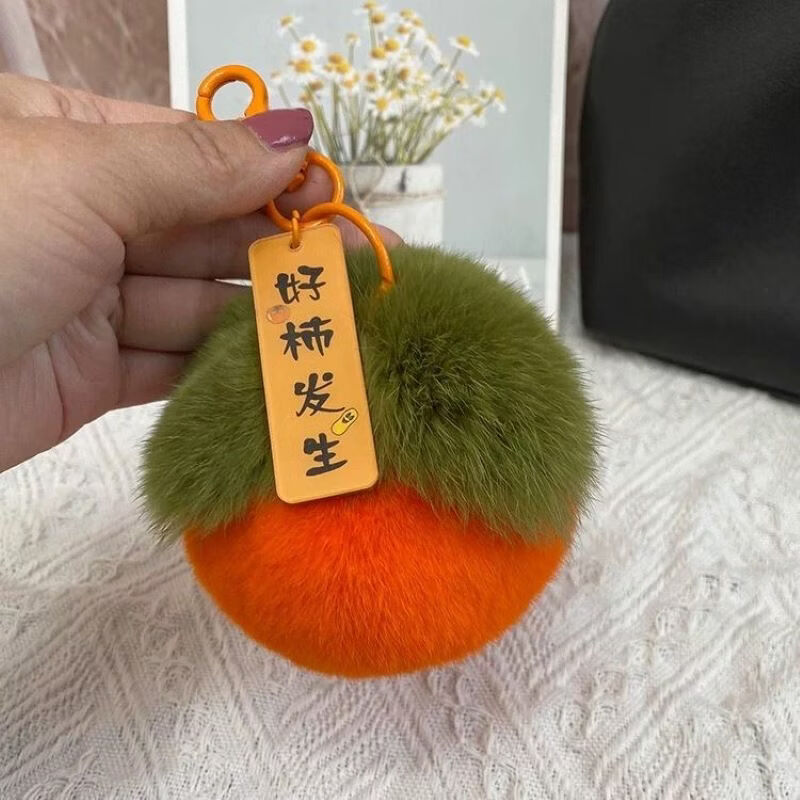 仿獭兔毛柿柿如意可爱书包挂件毛绒球玩偶公仔钥匙扣礼物 柿柿如意毛绒挂件