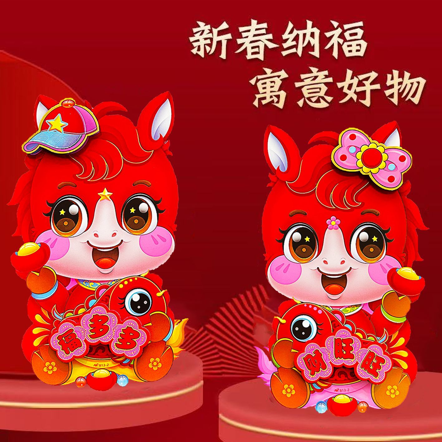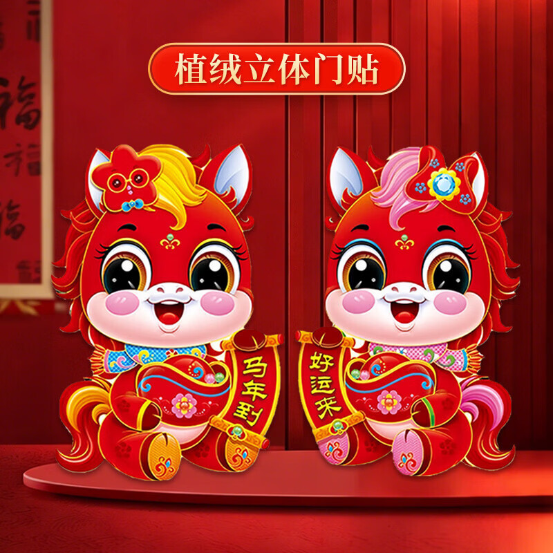 2026马年生肖贴新年春联对联福字窗花红包大礼包年货礼盒大门装饰用品 生肖贴【1对2个活动】24*16cm