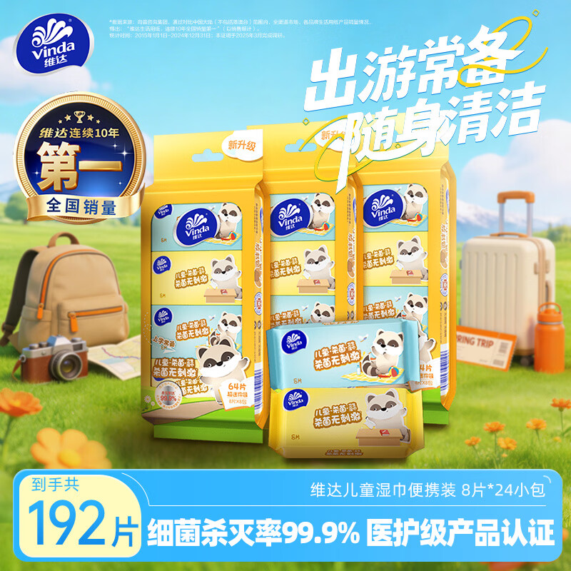 维达(Vinda)婴儿湿巾8片*24包 学生儿童专用迷你便携出行婴儿手口湿纸巾小包