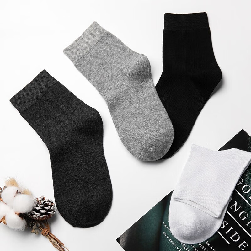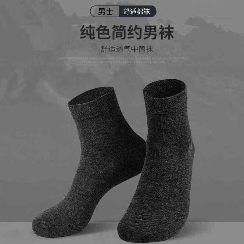 棉十三袜子男士新疆棉10A防臭抗菌中筒春秋季黑色商务休闲纯色透气10双