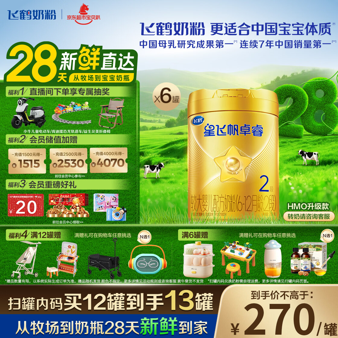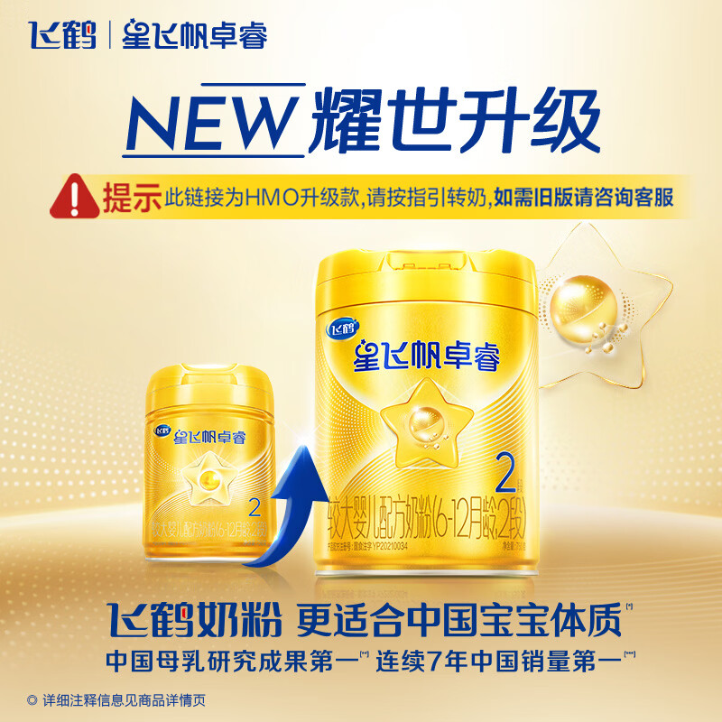 飞鹤星飞帆卓睿HMO 婴儿配方奶粉2段(6-12月)750g*6罐 28天新鲜直达