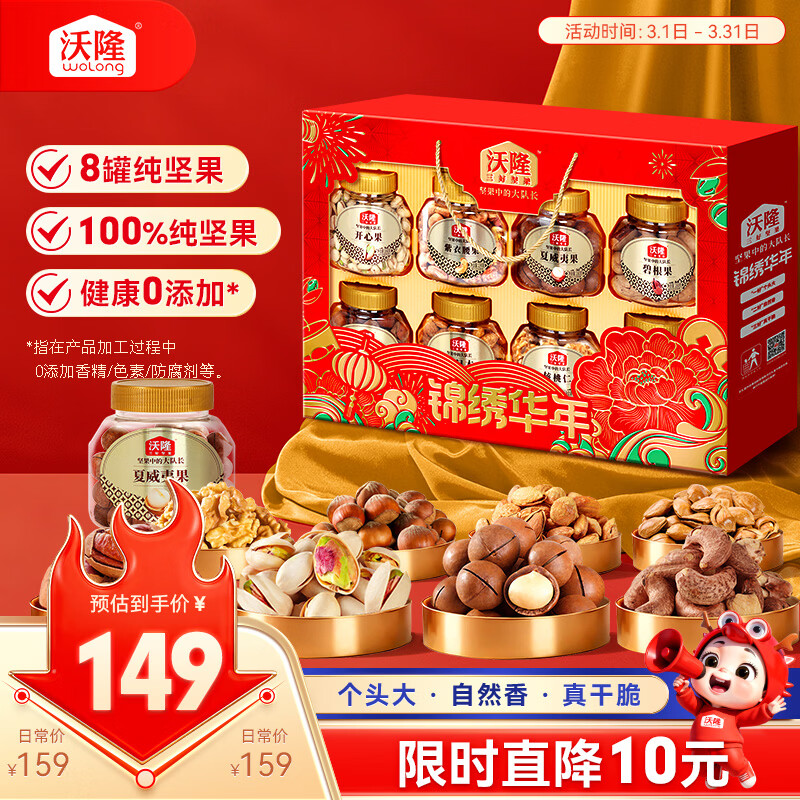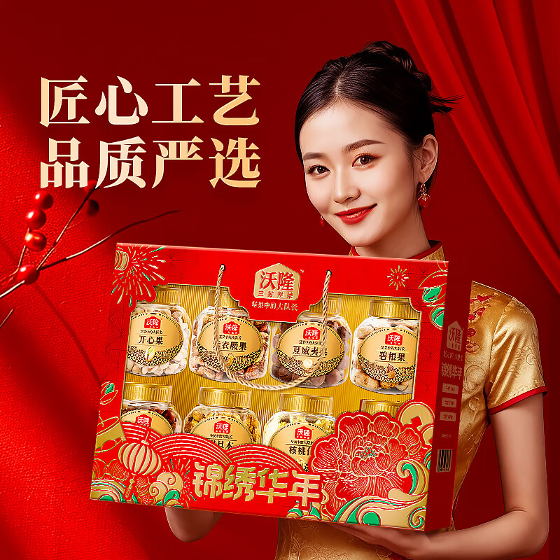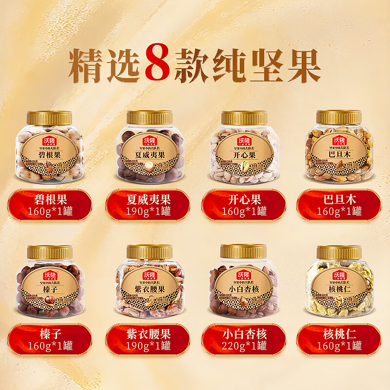 沃隆锦绣华年高端纯坚果礼盒8罐装1400g商务送礼干果炒货大礼包