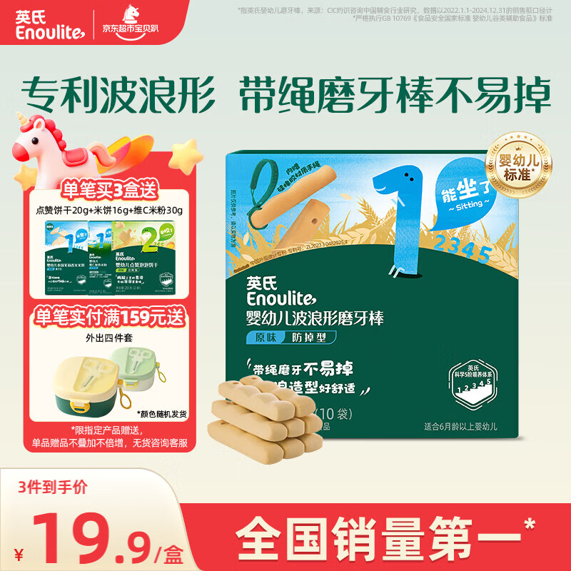英氏(Engnice)婴幼儿波浪形磨牙棒原味 婴儿宝宝零食出牙磨牙饼干 带绳防掉80g