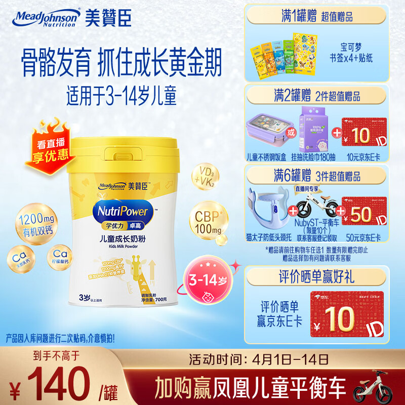 美赞臣学优力卓高3-14岁儿童成长奶粉700g罐装 (IP包装/普通包装随机发)