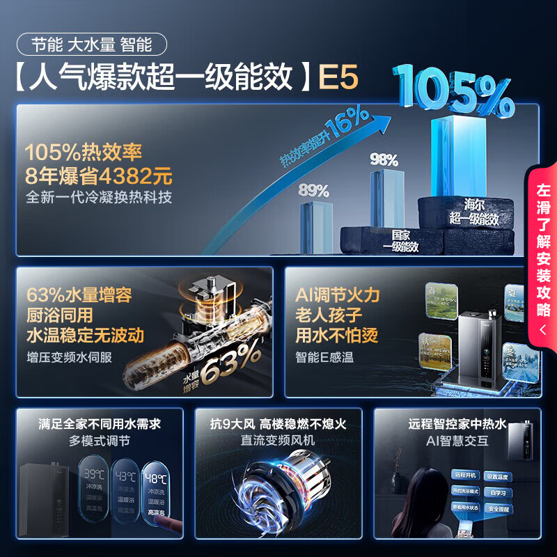海尔【E系列E5】16升一级能效节能 水伺服恒温 增压速热静音 【国家补贴15%】 家用燃气热水器