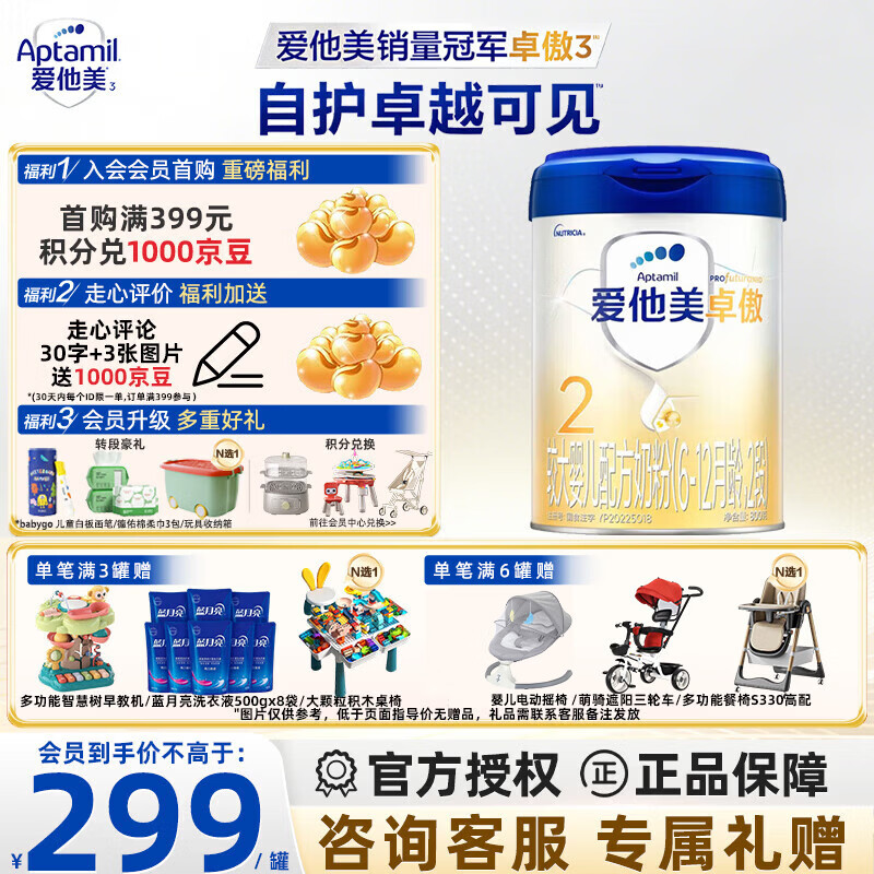 爱他美(Aptamil)卓傲2段较大婴儿配方奶粉(6—12月) 800g*1罐(0元入会)