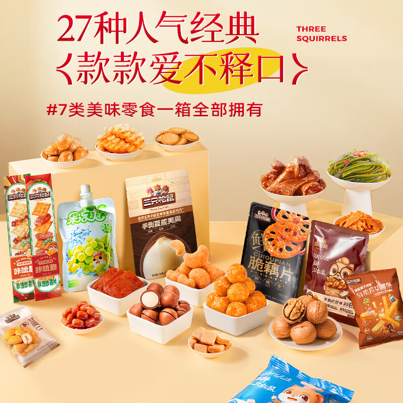 三只松鼠心享食刻零食礼包32件1363g 坚果辣条糕点蜜饯团购送礼
