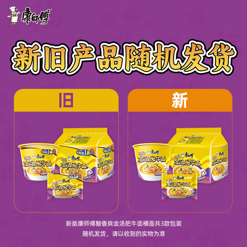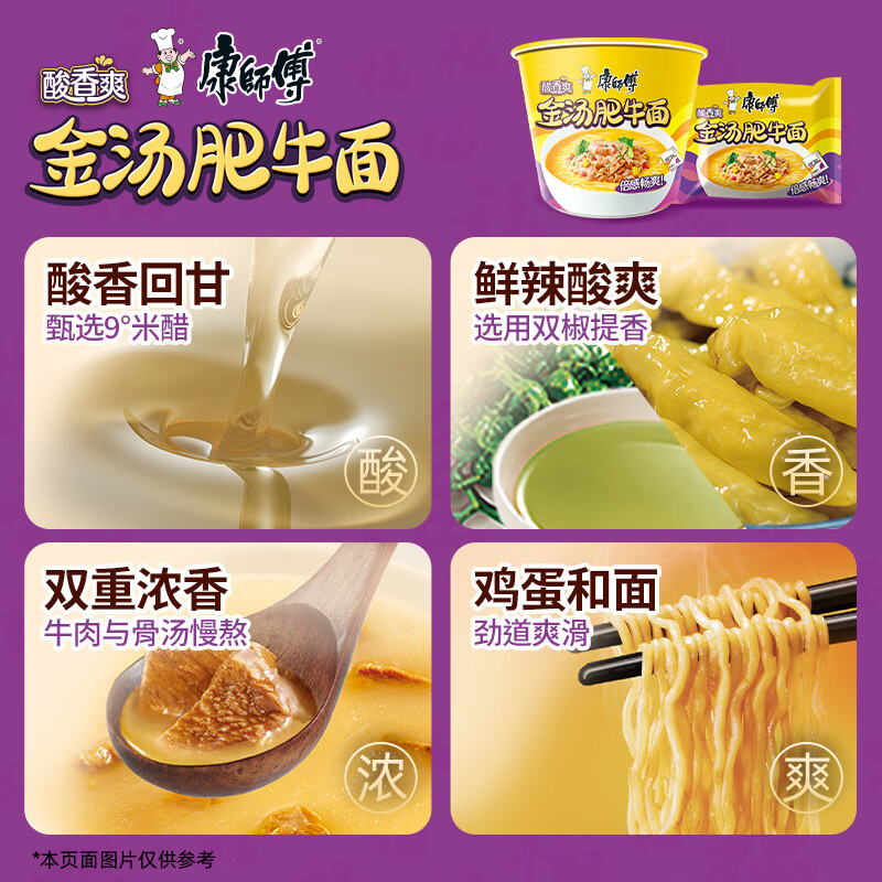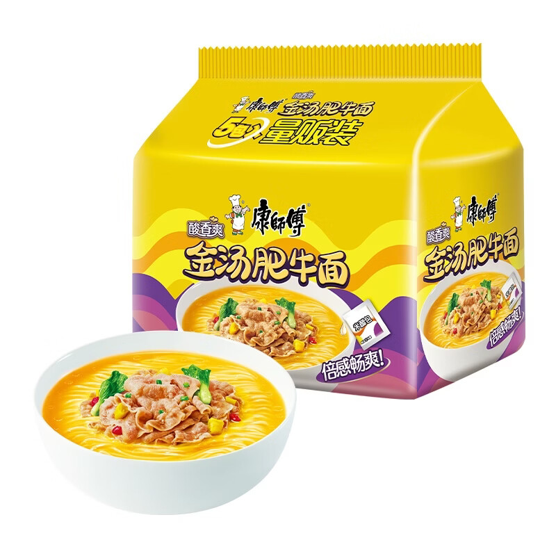 康师傅 方便面 经典酸香爽金汤肥牛面五连包105g*5 泡面袋装 方便食品