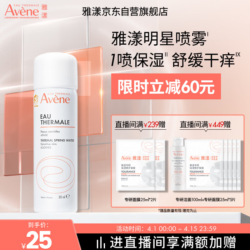 雅漾(Avene)舒泉保湿喷雾50ML 补水敏感肌爽肤水护肤水小喷旅行便携礼物