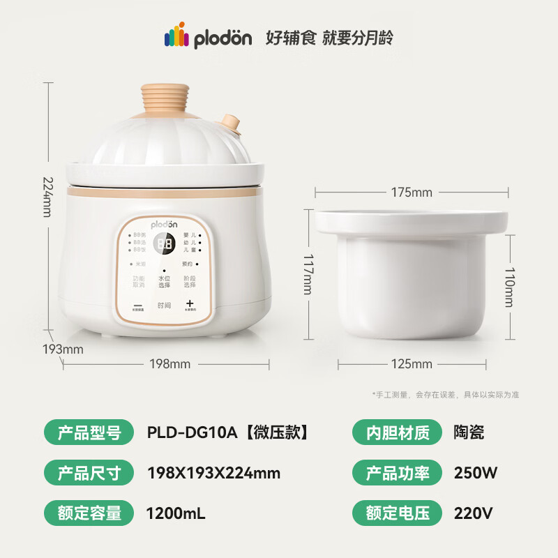 浦利顿(PLODON)婴幼儿童专用电炖锅辅食锅 分月龄BB煲粥饭锅微压炖盅宝宝炖汤锅