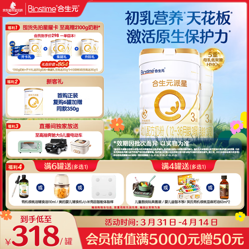 合生元(BIOSTIME)派星 幼儿配方奶粉 3段(12-36个月) 800g*2罐法国进口